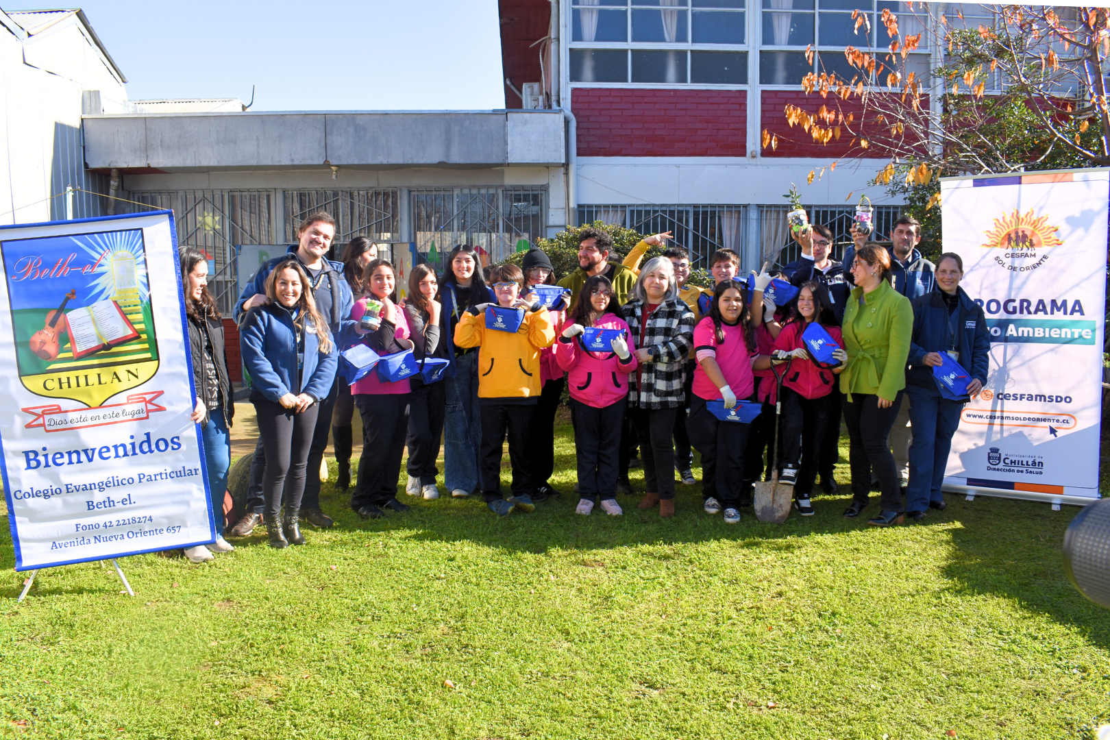 Por su parte, Fernando Bustamante Ulloa, subdirector Administrativo de la Disamu Chillán, resaltó la alianza intersectorial que hizo posible la actividad. “Estamos muy contentos porque esto reafirma el trabajo que realizamos junto al Colegio Beth-El y el Cesfam Sol de Oriente. Hoy conmemoramos el Día del Medio Ambiente viendo cómo los alumnos culminan un proceso iniciado hace tiempo con el reciclaje, transformando botellas en maceteros para plantar árboles autóctonos, que luego cuidarán con dedicación. Es fundamental crear conciencia en los niños para que valoren y protejan nuestro mundo”.