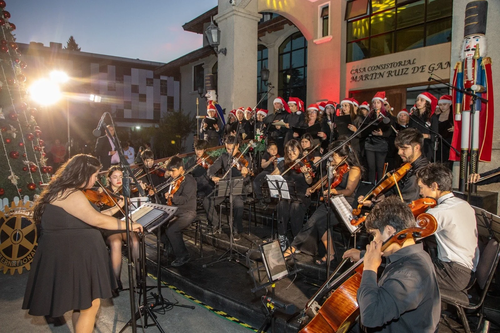 La jornada musical contó con la presentación del tenor autodidacta chillanvejano, Gustavo Hancenn, cuya interpretación cautivó a los asistentes, además de la participación de los integrantes del taller municipal de técnica vocal y coro, junto al taller de cuerdas. Este concierto, que se realiza gracias a una alianza colaborativa entre la Municipalidad y el Rotary Club Marta Colvin de Chillán Viejo, se ha consolidado como una tradición que marca el inicio de las festividades en la comuna, promoviendo la cultura y la unión familiar en estas fechas especiales.