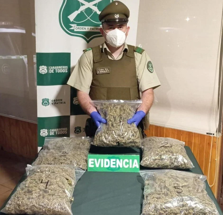 Carabineros sacó de circulación 10.190 dosis de marihuana, que tendrían un avalúo en el comercio ilícito de aproximadamente 50 millones de pesos.
