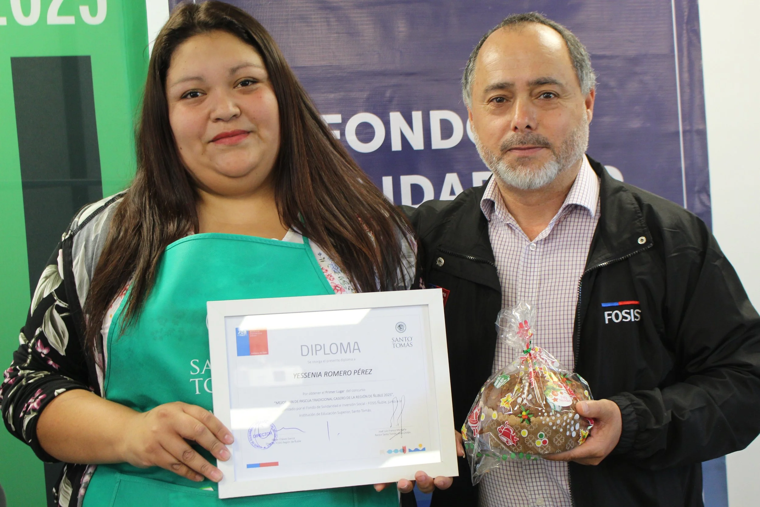 “Feliz de haber ganado, siempre todo lo que hacemos lo hacemos con mucho amor y el ingrediente principal es la chancaca que hago con almíbar”, expresó Yessenia Romero, quien tiene el honor de ser la ganadora del concurso "El Mejor Pan de Pascua Tradicional Casero de la Región de Ñuble", organizado por el Fondo de Solidaridad e Inversión Social, FOSIS y la institución de educación superior, Santo Tomás, sede Chillán, donde se realizó la ceremonia de premiación.