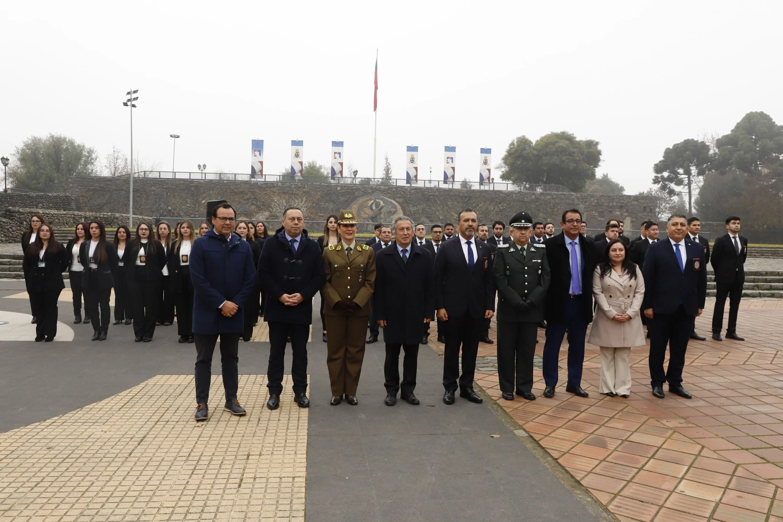 Este mediodía, en la explanada del Parque Monumental de Chillán Viejo, se realizó un izamiento de la bandera nacional, dando inicio simbólico a las actividades que conmemoran el mes de aniversario de la Policía de Investigaciones de Chile (PDI).