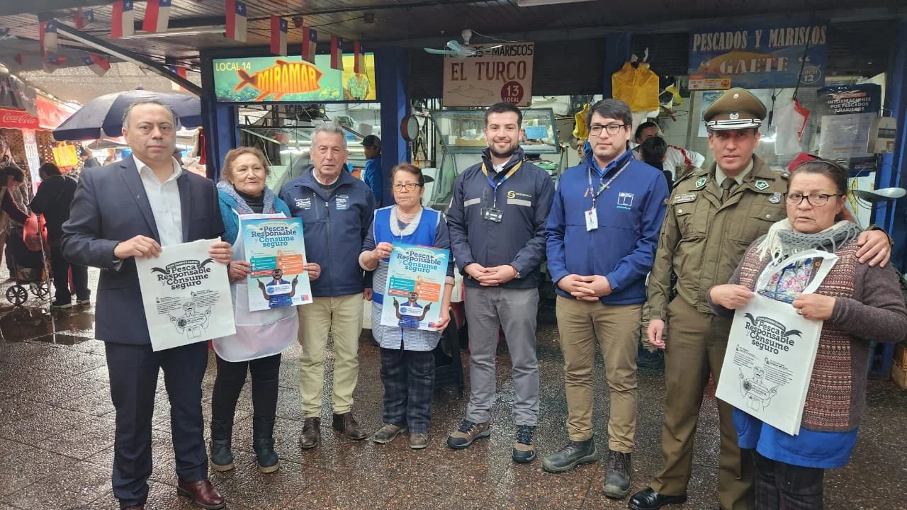 Ad portas del fin de semana en que los pescados y mariscos son los más cotizados, el Delegado Presidencial Regional, Rodrigo García Hurtado; el Seremi de Seguridad Pública, Jorge Muñoz Álvarez; el Seremi de Salud (s), Gustavo Rojas Venegas; el Director Regional del Servicio Nacional de Pesca y Acuicultura, Pablo Lazo, y el Teniente Coronel Juan José Moraga de Carabineros de Chile, se refirieron a los trabajos y medidas que se han estado impulsado.