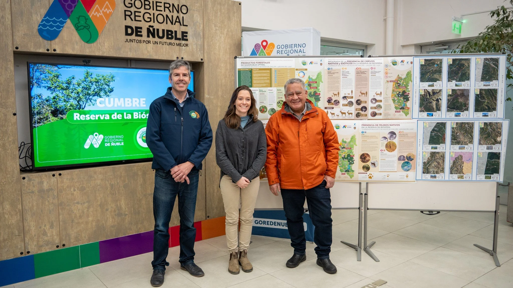 Así lo anunció durante esta jornada el Administrador Regional (s), Raúl Súnico, acompañado del director del proyecto FIC de Fomento Productivo y Desarrollo Territorial de la Reserva de la Biósfera, Jorge Jiménez; y de la directora de “Conserva tu Bosque” y representante de la red ciudadana por la conservación del Corredor Biológico Nevados de Chillán – Laguna del Laja, Daniela Farfán; quienes también participan de la organización de la Cumbre.