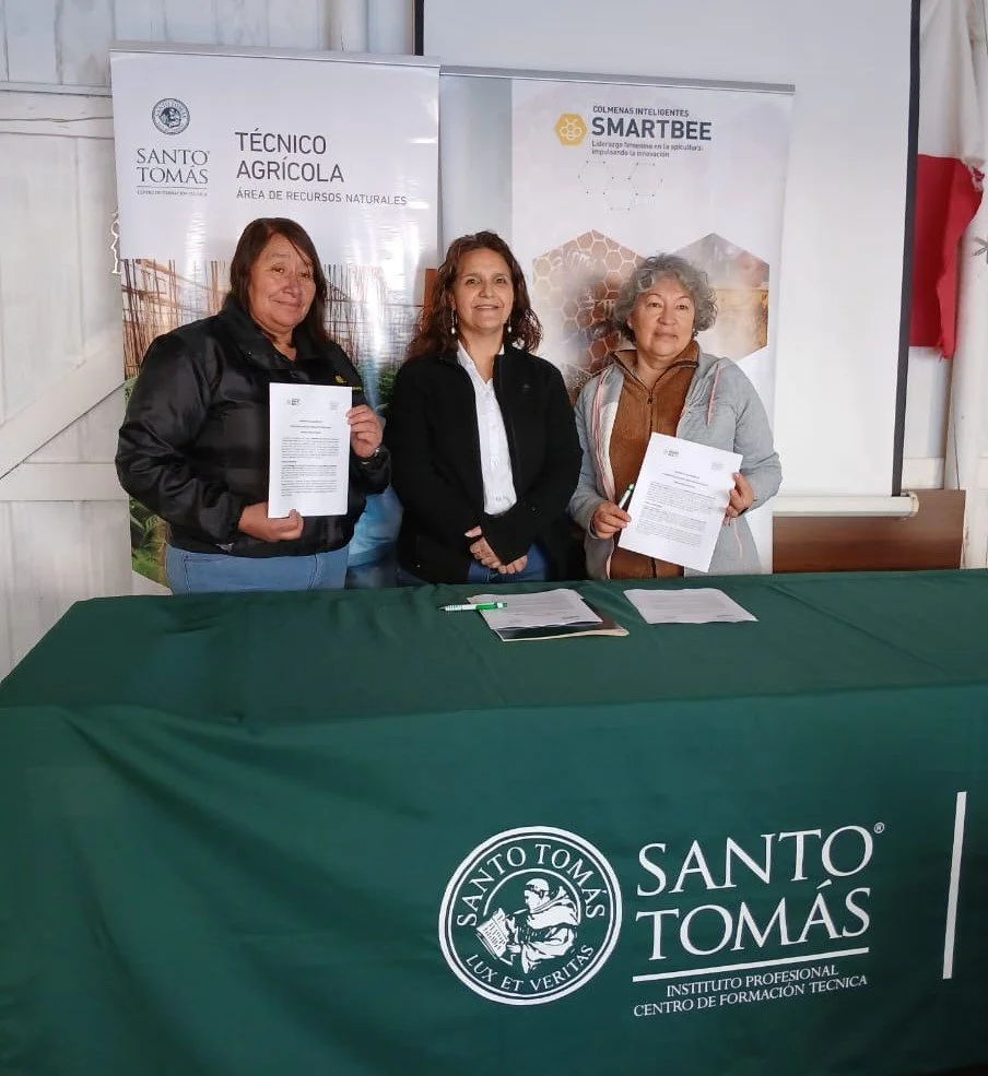 Apicultoras de Bulnes y Quillón suscriben convenio con Santo Tomás para fortalecer monitoreo tecnológico de colmenas